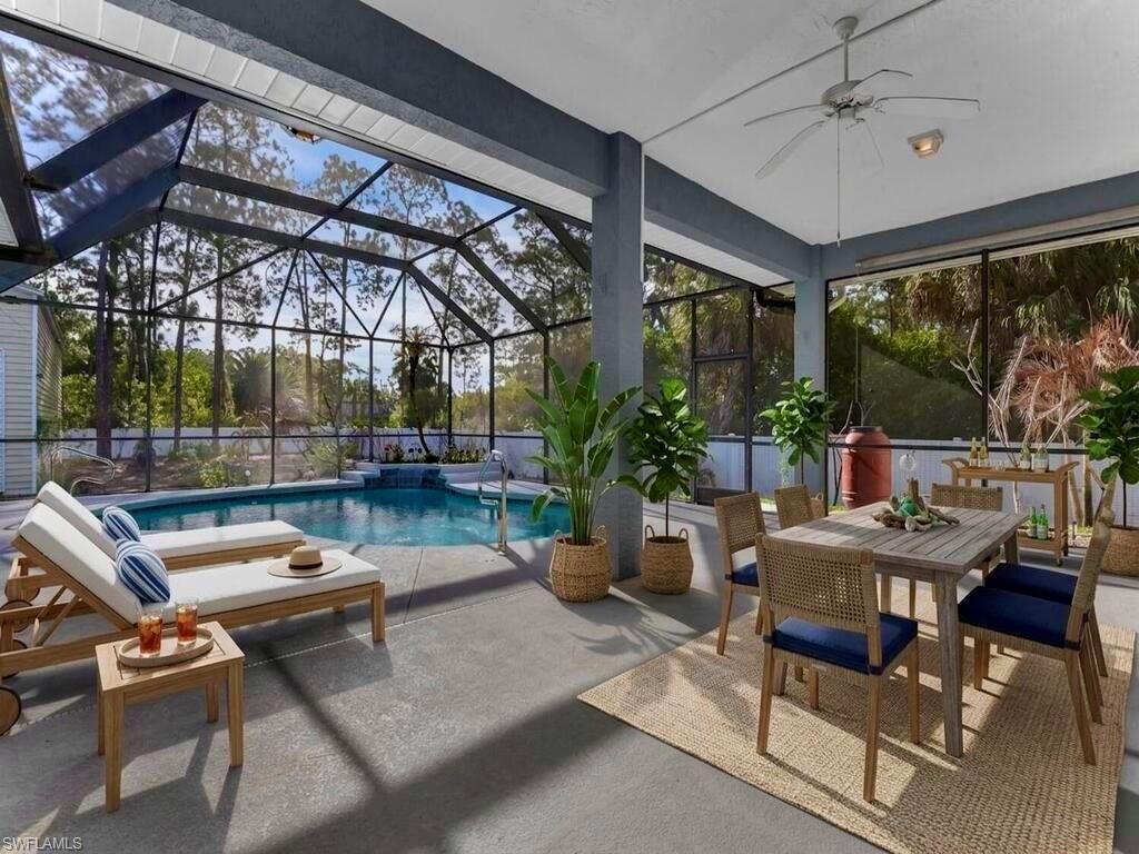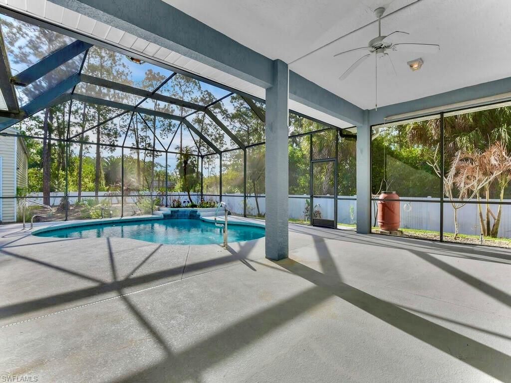 Welcome to the this Magnificent over 2,100 sq ft 3/3 waterfall HEATED POOL home on 6ft fenced half acre with an enormous insulated 30 by 50 DETACHED BUILDING including 12 & 15 ft roll up doors! This property has been freshly painted & nicely landscaped spotlighting GRAND elevations of high ceilings with 8ft pocket sliders & DOUBLE door entrance, refreshing big bay windows, a luxurious LEATHERED granite breakfast bar, and an impressive (2021) METAL roof. This split plan plan with DUAL SUITES also...Welcome to the this Magnificent over 2,100 sq ft 3/3 waterfall HEATED POOL home on 6ft fenced half acre with an enormous insulated 30 by 50 DETACHED BUILDING including 12 & 15 ft roll up doors! This property has been freshly painted & nicely landscaped spotlighting GRAND elevations of high ceilings with 8ft pocket sliders & DOUBLE door entrance, refreshing big bay windows, a luxurious LEATHERED granite breakfast bar, and an impressive (2021) METAL roof. This split plan plan with DUAL SUITES also highlights NEW pool heater & water softener system, attractive glass tiled backsplash, recessed & pendant lighting, a desirable jetted soaking tub, instant hot faucets, rewarding dual sink vanity, and a massive WALK-IN closet. It is tiled throughout & also features new wood plank tile, an oversized 2 car garage, whole house gutters, tiled walk-in shower, video security system, plant shelving, an accommodating back patio under trust, pantry, faux blinds, Fruit trees, and the laundry room is under with vanity sink & storage cabinets. It is nestled away on a quiet street just minutes to all major amenities & a quick commute to Fort Myers. Schedule your private showing today!